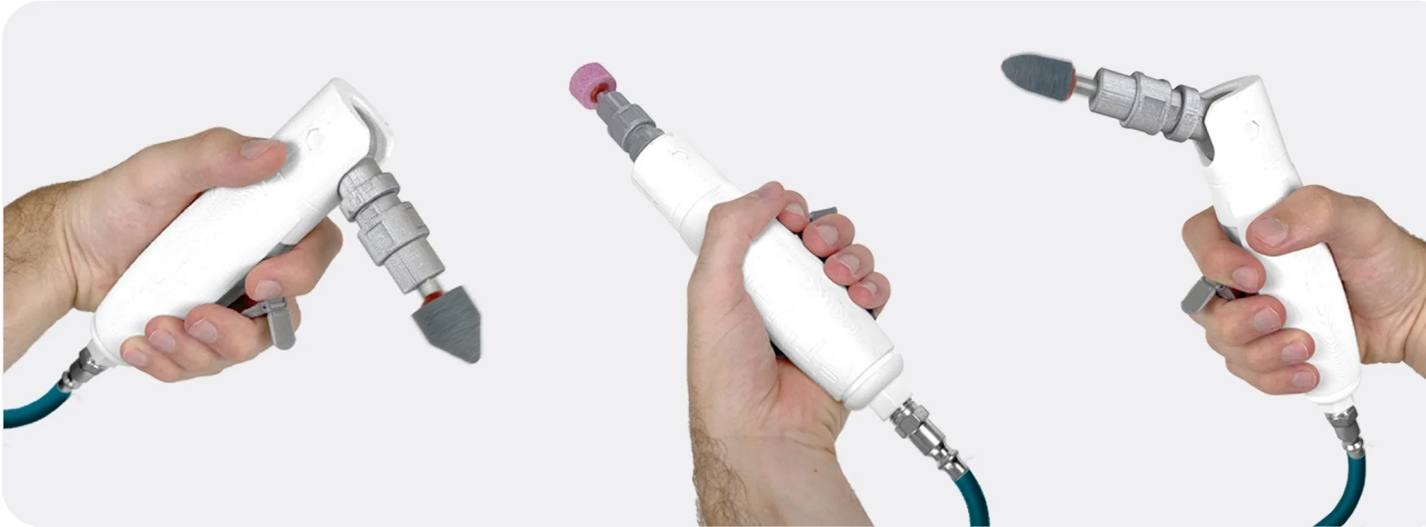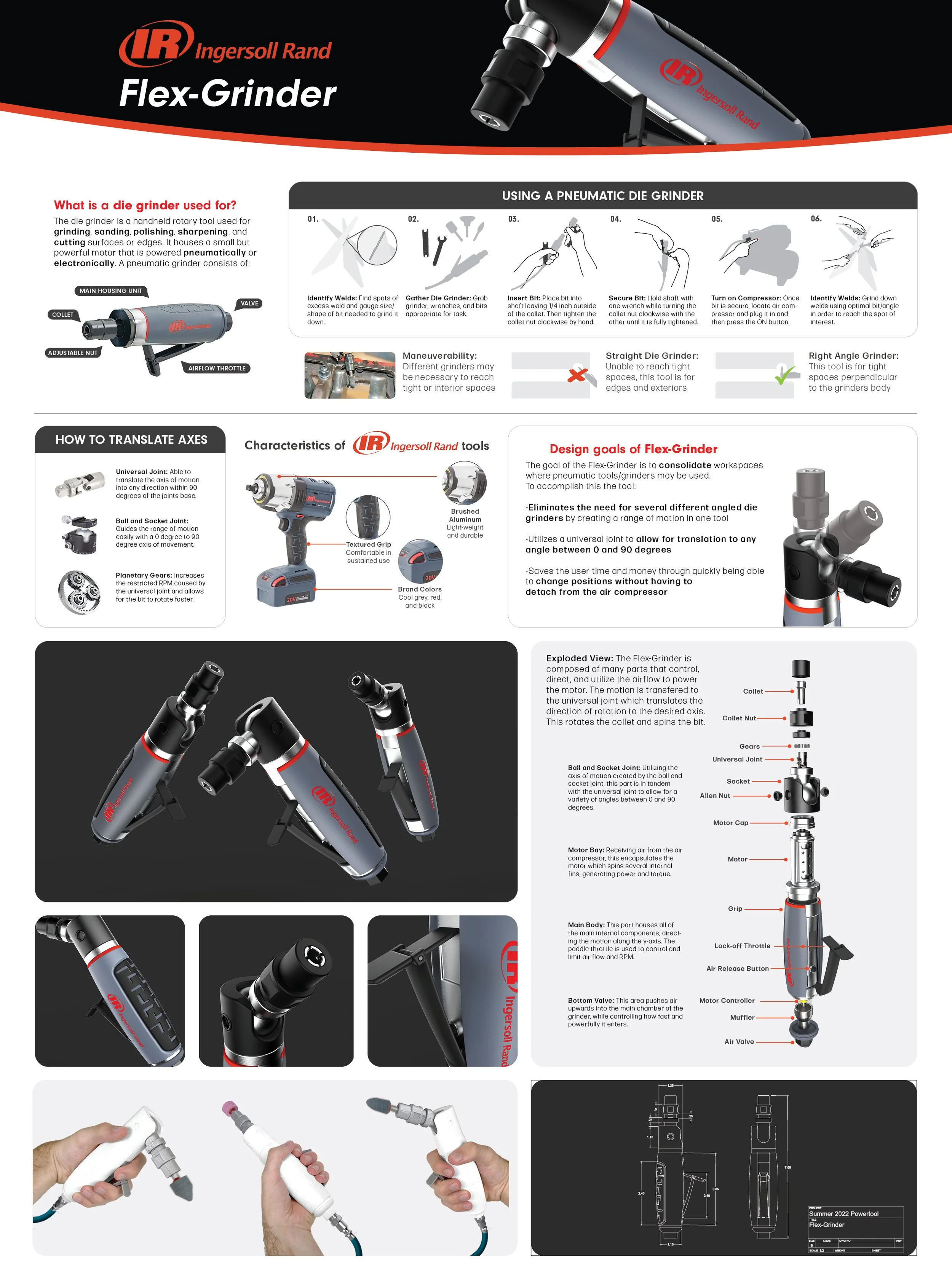 The goal of the Flex-Grinder is to consolidate workspaces where pneumatic tools/grinders may be used. To accomplish this the tool: