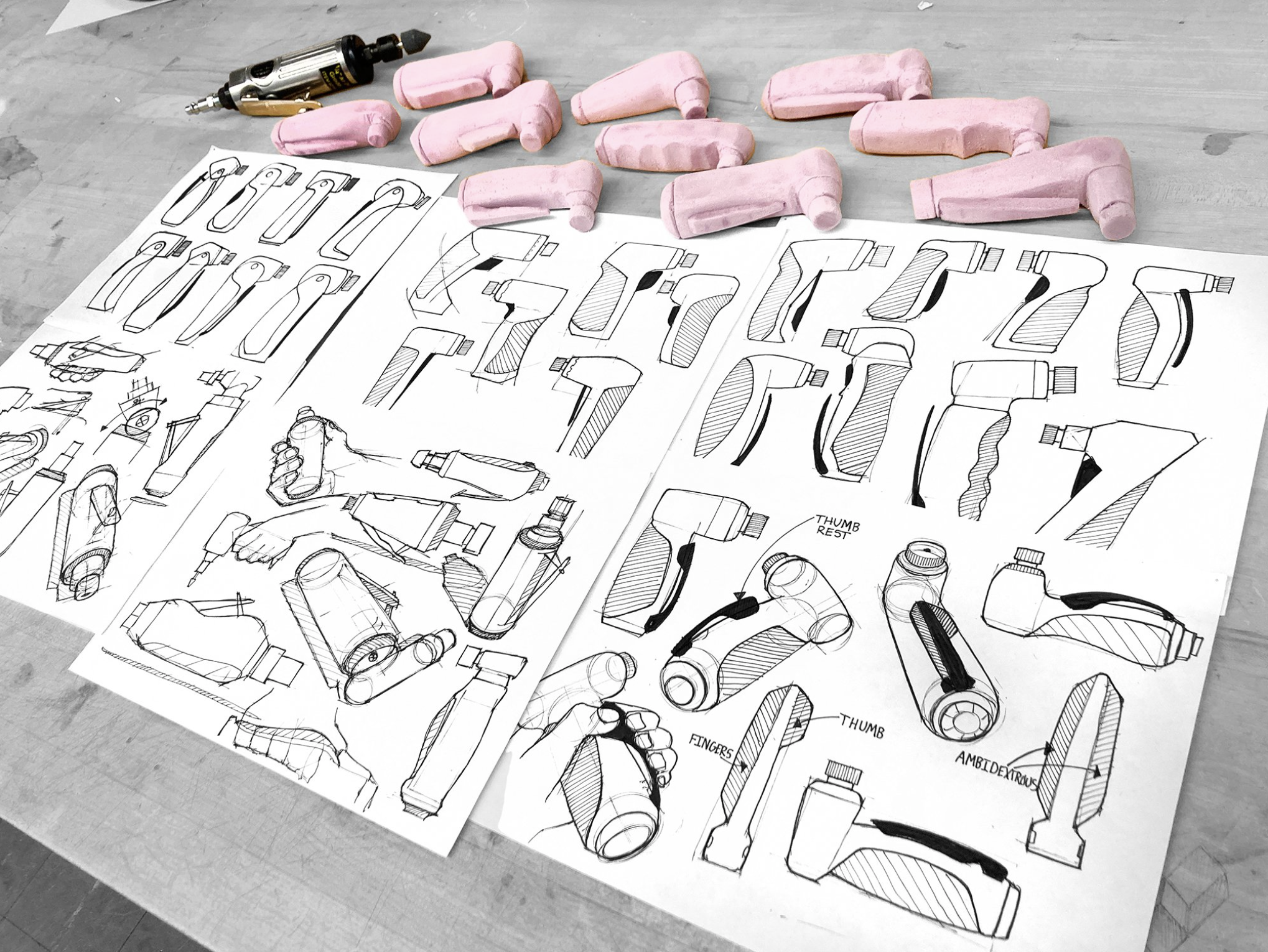 After sketching I explored form through foam and plastic modeling with the use of hand tools, CNC machining, and 3D printers.