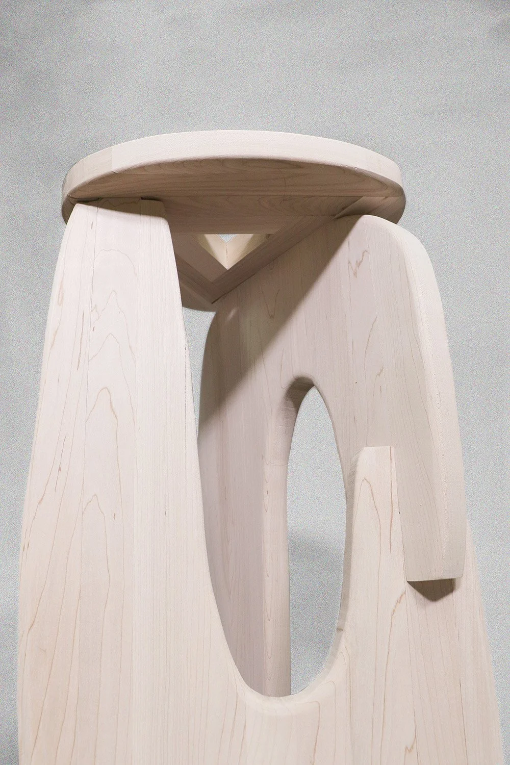 Interested by the contrast of architectural vs. natural forms, this stool will appear organic yet geometrically constrained. It will be made of soft maple wood: