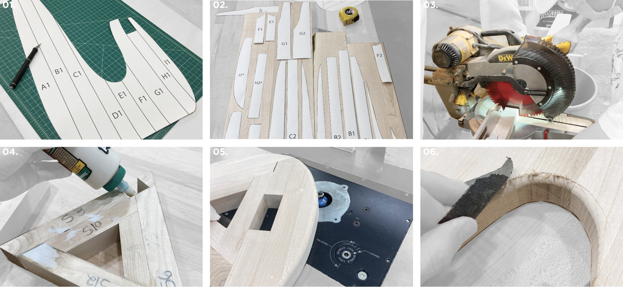 After modeling in Fusion 360, I printed out the stools structural segments and translated the dimensions onto wood.