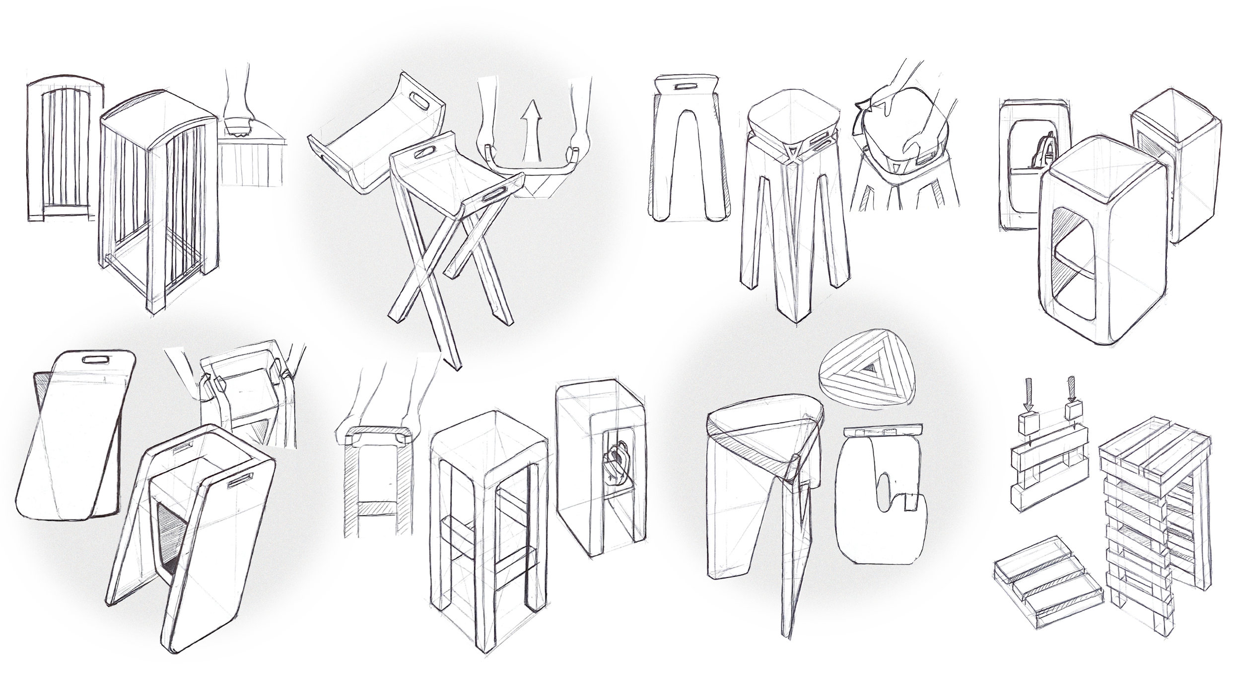 Without the constraints of hardware, the stool will be easy to assemble and take apart. It will be aesthetically pleasing and have the ability to be flat packed.