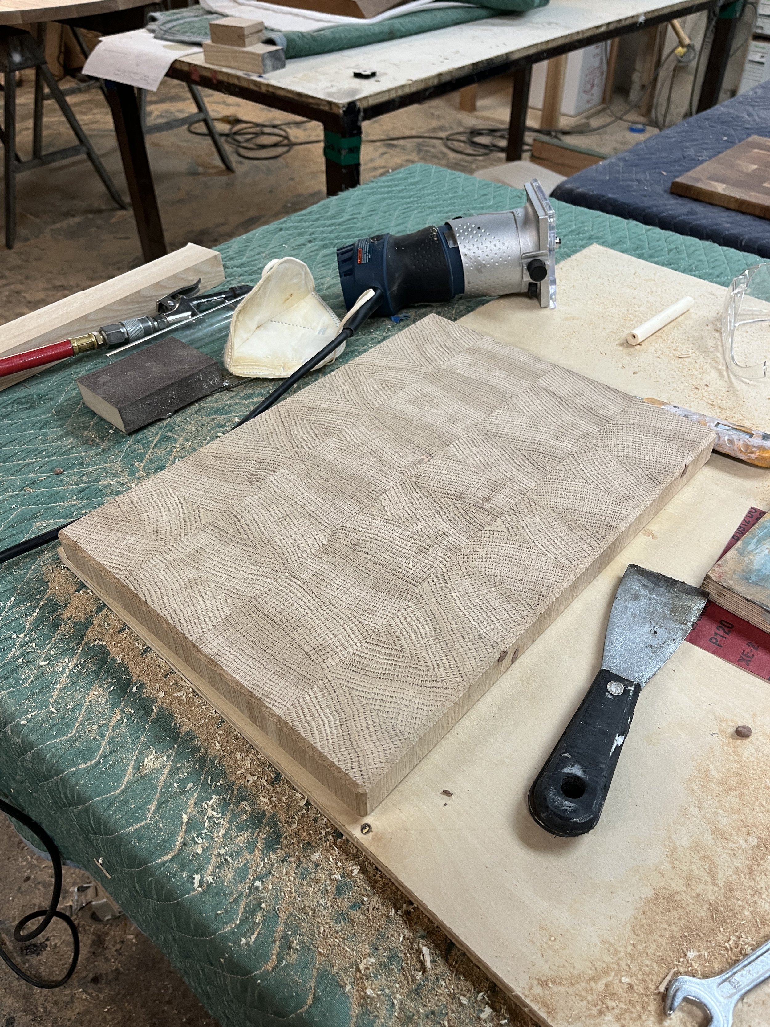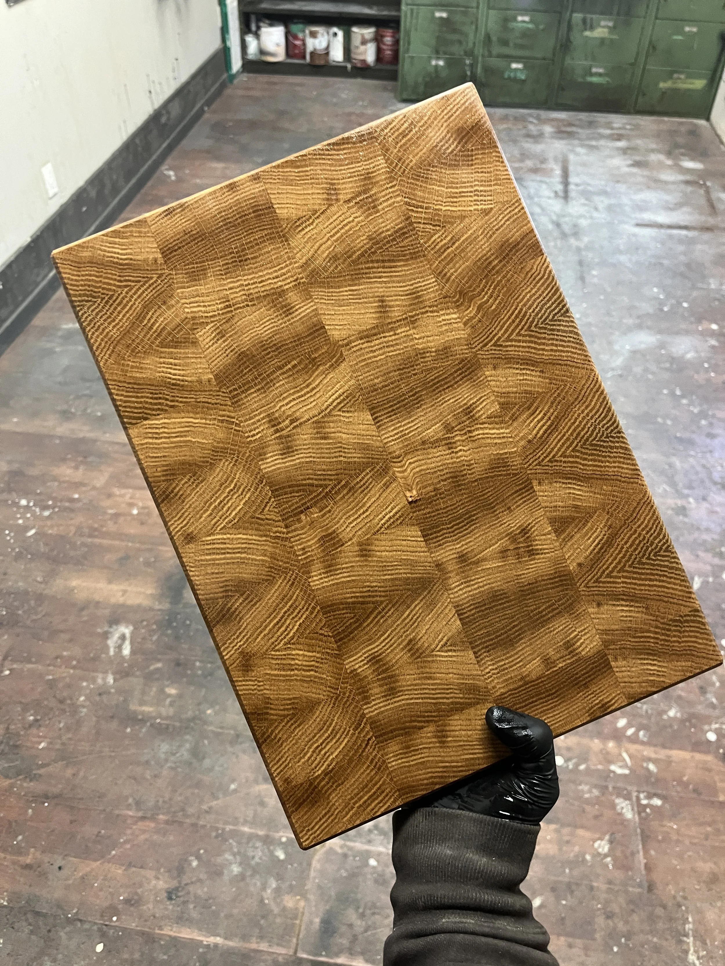 Made from off cuts of oak end grain, I used the dynamic grain of the wood to create a cutting board with movement and flow in its natural design.